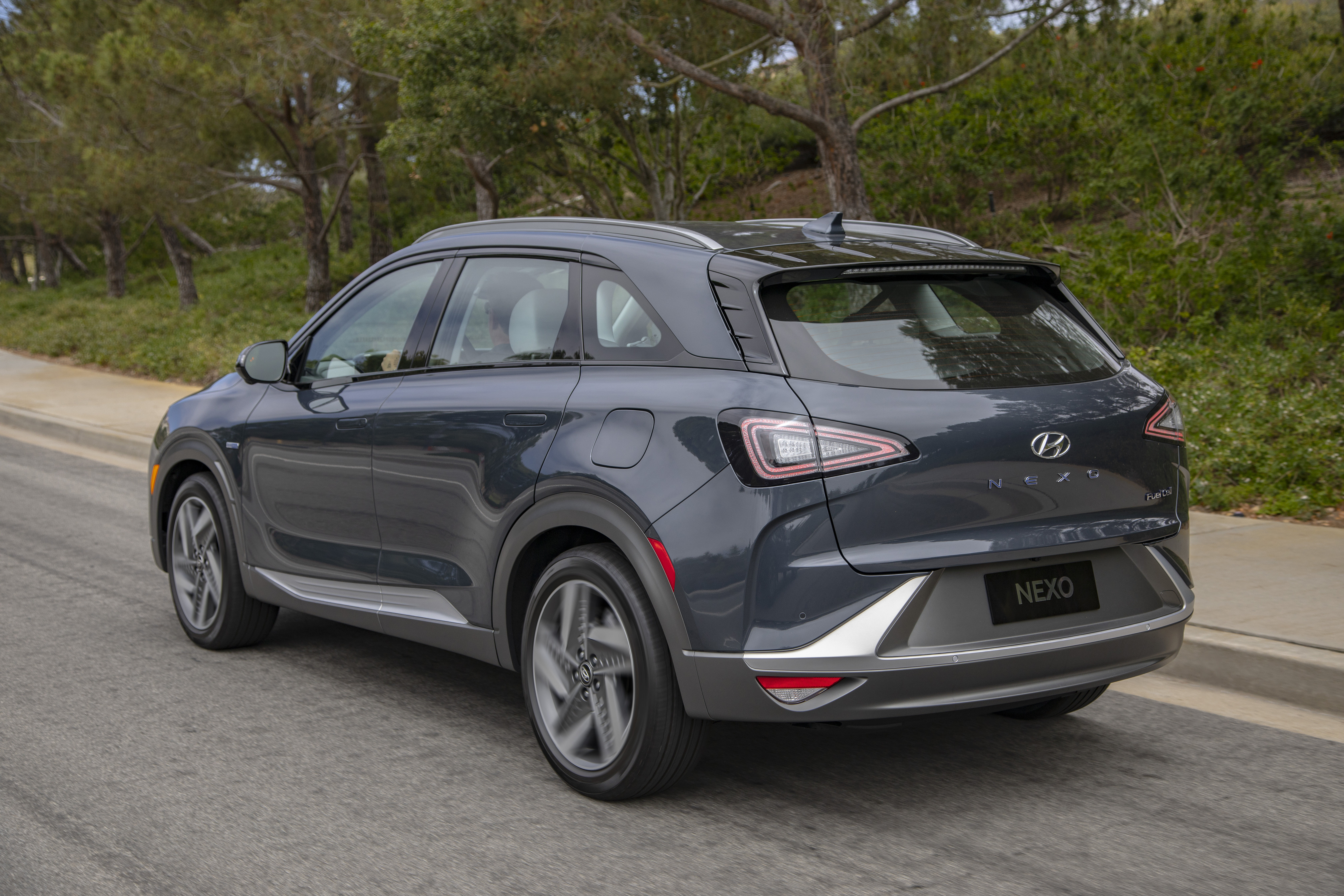 NEXO will be offered in two trim levels: Blue and Limited. The Limited model adds 19-inch alloy wheels, sunroof, power liftgate, and remote smart parking assist. NEXO colors include white pearl, cocoon silver, copper metallic and dusk blue. Interior environments include stone gray and meteor blue and use a vegan-based leatherette seating surface.
