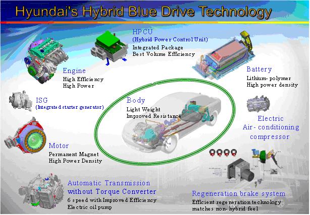 Blue Drive Hydrogen Fuel Cell Electric VehicleHyundai is at the forefront of advanced technology research. In September 2005, Hyundai Motor Company celebrated the grand opening of its Eco-Technology Research Institute in Mabuk, Korea, which houses all R&D on environmentally friendly technologies, concentrating Hyundai’s efforts to develop alternative powertrains in one state-of-the-art facility.