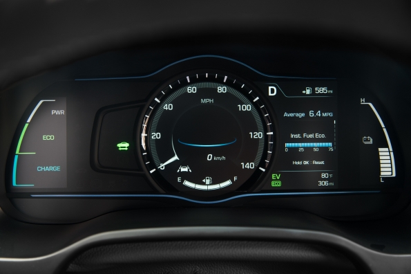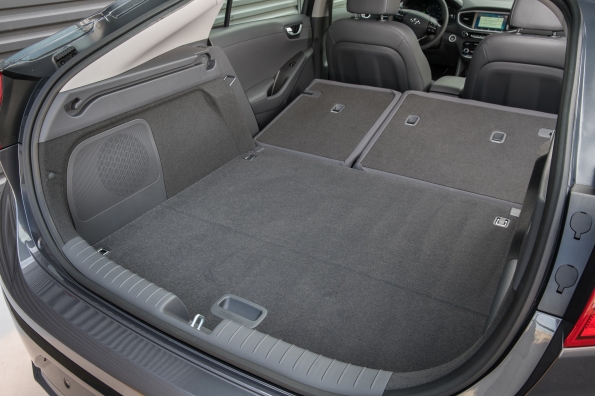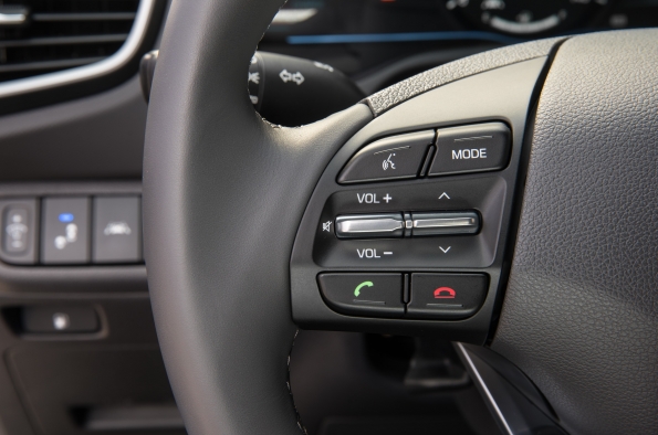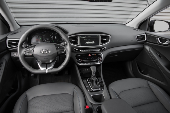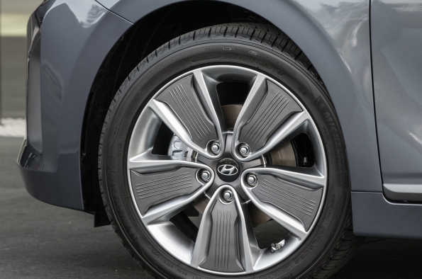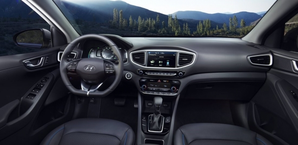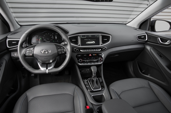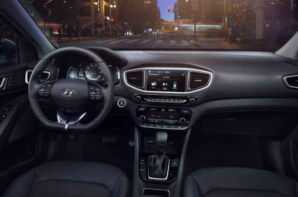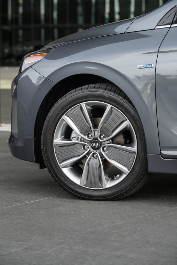 The driver and passenger of the Electric model will also notice that there is more room between the front seats. This is achieved via a button-activated shift-by-wire system free of mechanical linkage. The Ioniq also features an electronic parking brake (EPB), conserving space in the center console.Advanced aerodynamicsThe Ioniq sleek silhouette and its simple, carefully wrought contours assist the efficient management of airflow around the exterior. Applications like front wheel air curtains, a rear spoiler and diffuser, side sill moldings, floor undercover and a closed-wheel design all contribute to the car’s high aerodynamic efficiency of 0.24 Cd. Additionally, the Hybrid and Plug-in hybrid feature a three-stage active air flap integrated with the front grille, while a sleek, closed front fascia differentiates the Electric model.Smart and efficient air conditioningTo provide a pleasant, comfortable and refreshing interior climate without using unnecessary amounts of energy, the Ioniq climate control can be switched to an efficient operation mode. Recirculated air is maximized when air-conditioning or heating, reducing ventilation losses and increasing the overall efficiency of the system. Also, the fully-automatic climate control can be set to ‘Driver only’ mode, thereby reducing the load of both air-conditioning and heating on the overall powertrain.Eco-focused materials create clean and sustainable interior ambienceA key characteristic of the Ioniq is its innovative use of recycled or ecologically-sensitive materials. The interior door covers are made of plastic combined with powdered wood and volcanic stone while providing the same quality appearance of typical plastic-based materials. The softer, more natural feel is achieved along with less reliance on oil-based products. This approach extends to other areas of the car as well. Raw materials extracted from sugar cane are partly applied on the headliner and carpet. Paint with renewable ingredients extracted from soybean oil is used to achieve lustrous metallic colors on key components.Infotainment SystemTo suit customers’ varied lifestyles, Ioniq features state-of-the-art infotainment and connectivity features. Ioniq is equipped with a high-definition 7-inch TFT information cluster. With a resolution of 1280 x 720 pixels, it displays all gauge functions (speedometer, drive mode, fuel level). Depending on the selected drive mode, background color and gauges are adapted to always provide the most important and useful information. Within SPORT mode, the display changes into a revolving digital speedometer that is surrounded by an analog-type tachometer, showing engine rpm in red. When choosing ECO mode, the TFT-information cluster simulates the classic speedometer needle.Ioniq also allows drivers to integrate their smartphone with the vehicle’s infotainment system by providing both Apple CarPlay® and Android Auto®. Both systems enable users to connect their devices to activate music, telephone or navigation functions with lower distraction levels. Ioniq also offers a wireless inductive-charging pad (Qi standard) for mobile phones.Lightweighting focusIoniq sought significant weight reduction targets without compromising fun-to-drive and comfort characteristics. Ioniq uses aluminum in the hood and tailgate, reducing weight by 27 lbs. compared with conventional steel and no measurable disadvantages in noise or vibration. In addition, the lead-acid auxiliary 12V battery found in competitors’ hybrid models has been omitted, resulting in an approximate 26-pound reduction in weight. Lightweighting also extended to less obvious areas like the cargo-screen cover. With higher usage of lightweight components and a more compact build, the cargo-screen cover is about 25 percent lighter than the types used in other Hyundai models.Driving performance – low- to zero-emission mobility without compromiseThe driving performance of the Ioniq line-up is among the best in its segment due to a powertrain that is adapted to deliver efficient mobility without compromise. Ride and handling, as well as noise, vibration and harshness levels, are tuned towards superior ride quality, while insulation in the instrument panel minimizes engine compartment noise intrusion. Damping in the floor panels, as well as enhanced A- and B- pillar insulation, thicker window glass and noise-cancelling film on the windshield, further improve the quiet and comfortable driving experience.Ioniq Hybrid and Plug-in feature a sophisticated multi-link rear suspension system with dual lower control arms, minimizing ride and handling compromises often associated with less sophisticated suspension geometry. In addition, extensive use of aluminum in front and rear suspension components saves around 26 lbs. of weight compared with conventional materials. A reduction of five lbs. per front lower arm unit saves 10 lbs. at the front suspension, while nearly 16 lbs. is reduced at the rear suspension. In addition, the placement of the battery systems below the rear seats provides a lower center of gravity for more responsive handling.The Ioniq Electric applies a torsion-beam rear axle, providing more space for the 28 kWh lithium-ion polymer batteries, placed below the rear seats. Ioniq’s responsiveness and feedback from the steering system is clear and precise, with a quick steering ratio for a sporty and responsive feel. Braking force is optimized for maximum efficiency from the regenerative braking system, helping Ioniq to maintain a steady state of charge (SOC). Regenerative braking also operates with reduced noise, using a third-generation recuperating stopping system. An Integrated Brake Assist Unit (iBAU) and Pressure Source Unit (PSU) also contribute to quieter operation. This helps ensure ultra-low friction for maximum energy recuperation and efficiency levels.Michelin® tires give Ioniq enhanced levels of efficiency, as the car is fitted with low-rolling-resistance tir