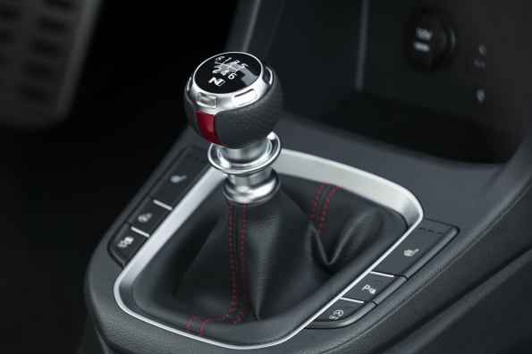 The vehicle’s interior is equally focused on true performance features. The centrepiece of the interior is the exclusive ‘N’ sports steering wheel, which ensures the driver is in 100 percent control of all driving performance features directly by hand. It is manufactured with a red-coloured stitching. Pushing the characteristic dark metal painted N button with a chequered flag icon on the right side allows direct access to the N mode. In addition, the N mode can be accessed via customised settings which become visible on the navigation screen. On the left, drivers can select three standard drive modes: Normal, Sport and Eco. Above the N button, drivers can activate the rev button to use the Rev matching control system for better engine control. The N logo is positioned on the base of the steering wheel. The gear shift also features red stitching in line with the coherent colour design and is finished with glossy red metal paint. The air vents continue the sporty look with red-coloured trims.