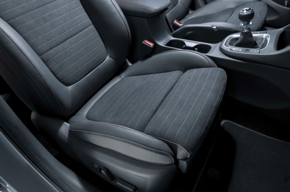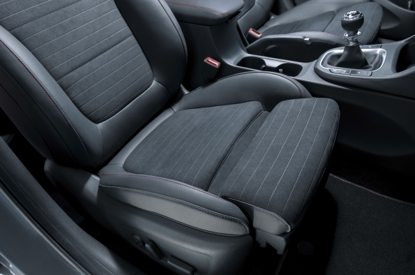 The interior is available with a colour combination of Black and Red Point. The Red Point trim sets red colour accents to create a sporty and subtle look inside the car, for example on the seats, which are available in cloth or optionally in a combination of suede and leather. Both combinations feature red stitching. The seat belts and headliner are designed in an elegant, sophisticated Black.