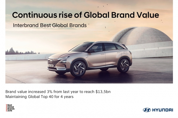 Hyundai Motor Achieves Top 40 Best Global Brands Position for Fourth Consecutive Year October 4 2018 SEOUL, Oct. 4, 2018 – Hyundai Motor has been ranked among the highest valued brands in the world once again, according to the latest rankings published by global brand specialist Interbrand. Hyundai’s global brand value grows 3% since 2017 to a company record high of US $13.5 billion. This result successfully places the company in a top 40... : 0 : 1 : 2 Read more