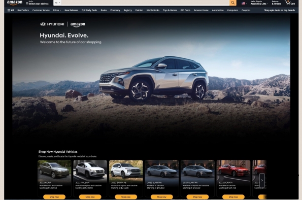 Hyundai and Amazon Evolve the Digital Retail Experience October 7 2021 FOUNTAIN VALLEY, Calif., Oct. 7, 2021 – Hyundai and Amazon Ads are again enhancing the car shopping experience with brand new features launching today on Hyundai’s Evolve showroom on Amazon. The expansion of the digital showroom allows shoppers to discover available vehicles at participating dealers and begin the vehicle selection process... : 0 : 4 : 2 Read more