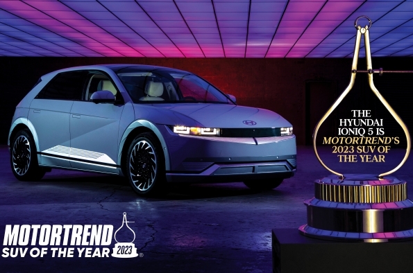 MotorTrend Names Hyundai IONIQ 5 2023 SUV of the Year October 20 2022 LOS ANGELES, Oct. 20, 2022 – MotorTrend announced today that the Hyundai IONIQ 5 is the winner of its “Golden Calipers” for SUV of the Year. : 0 : 5 : 2 Read more